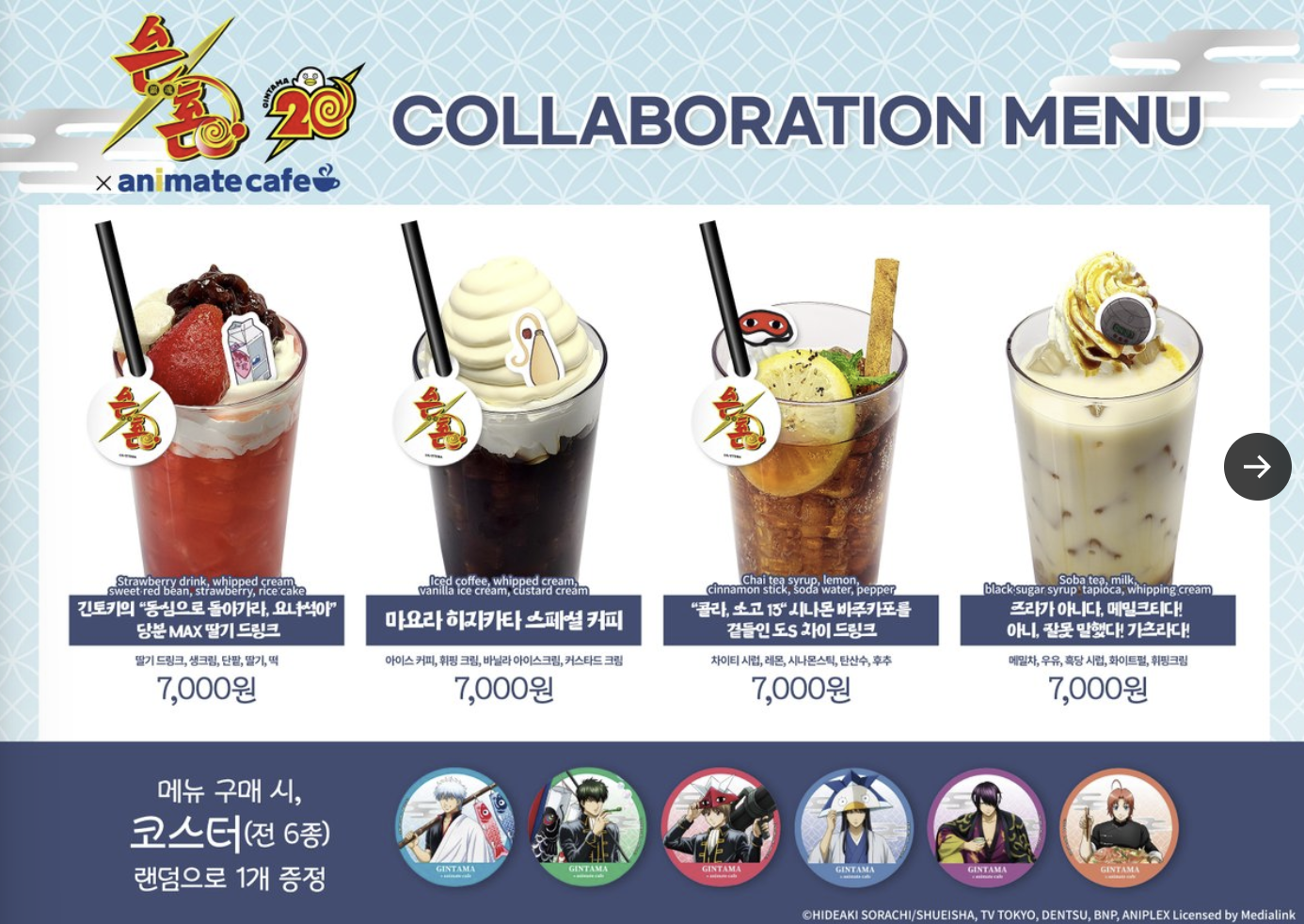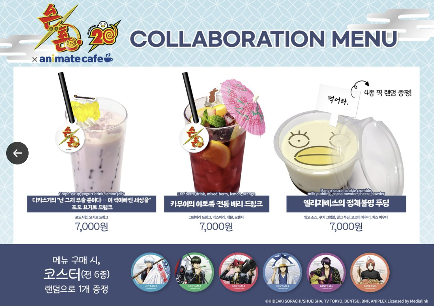 2. 은혼 콜라보 애니메이트 카페 메뉴