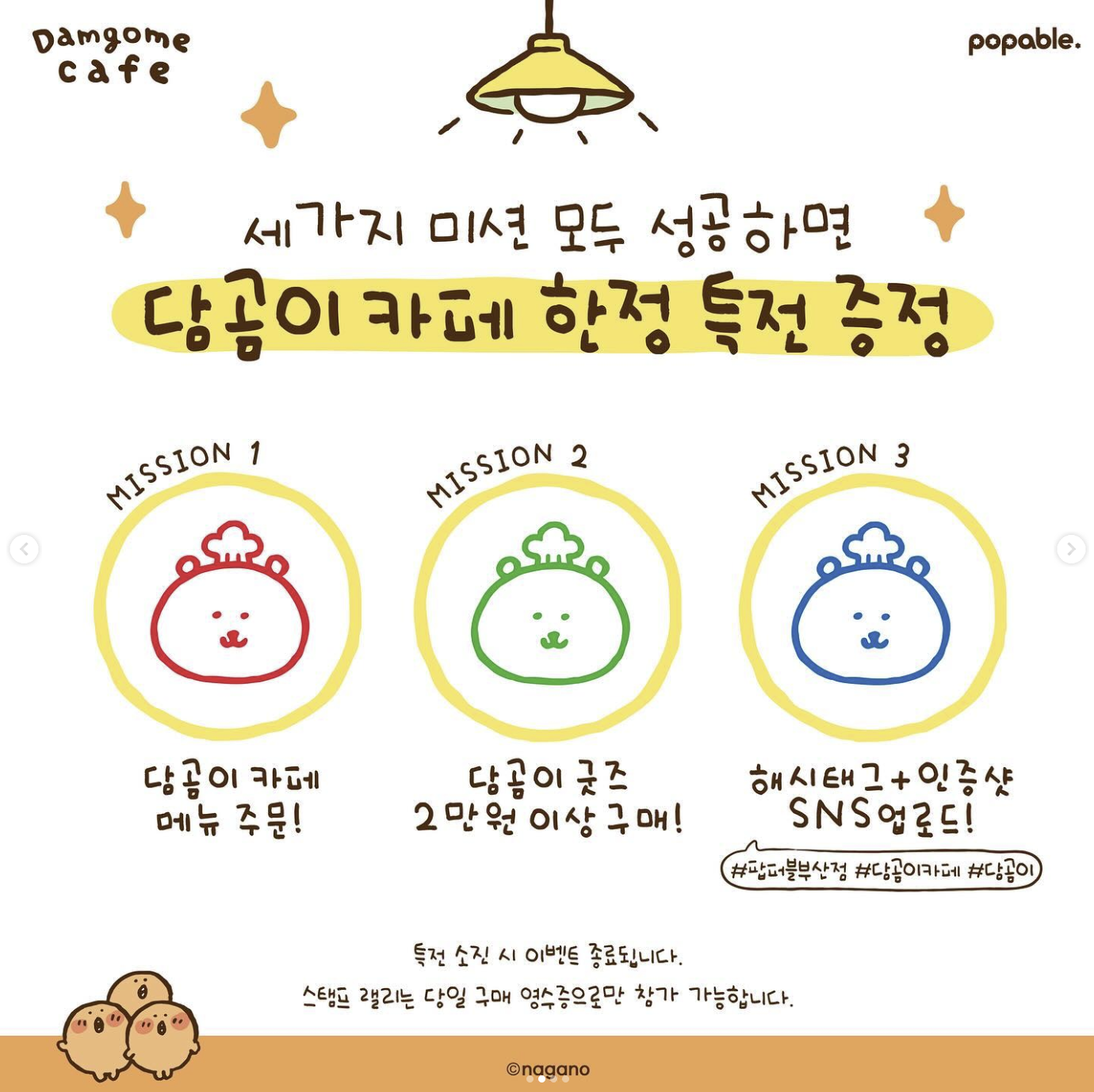 3. 해시태그 + 인증샷 SNS 업로드 (#팝퍼블부산점 #담곰이카페 #담곰이)