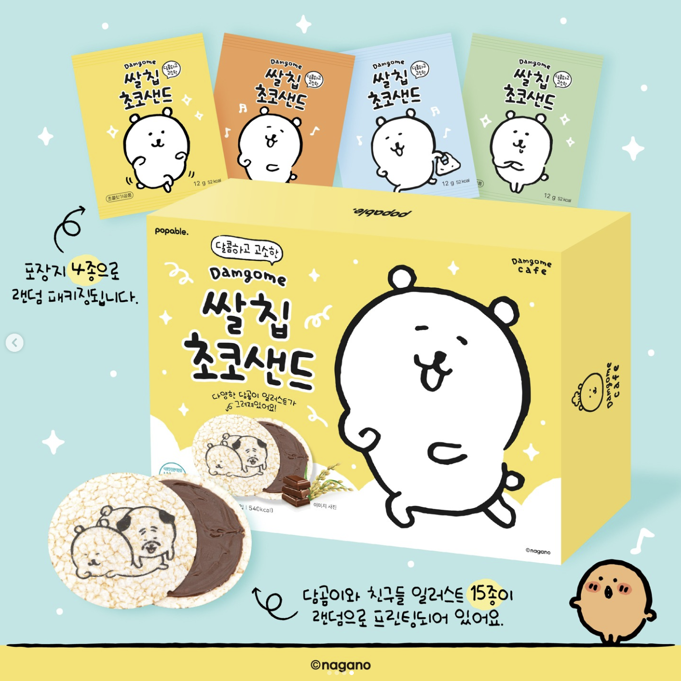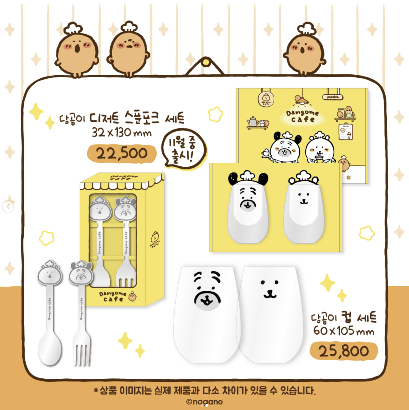담곰이 수세미, 컵 세트, 담곰이 접시, 담곰이 디저트 스푼포크 세트, 쌀칩 초코 샌드