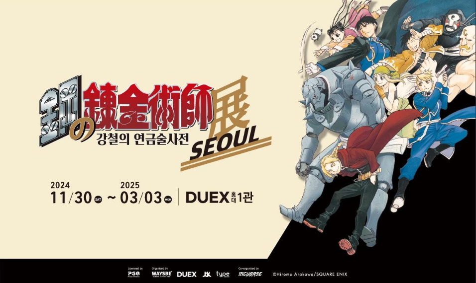 11월 30일부터 내넌 3월 3일까지 홍대에서 강철의 연금술사전이 개최됩니다. 이 전시회는 2021년 만화 연재 20주년을 기념하여 일본에서 시작되어 올해 한국에 상륙하였는데요. 매력적인 세계관과 연금술이 합쳐져서 여러 사람들한테 사랑을 받고 있습니다. 이번 전시는 한국 최초로 열리는 강철의 연금술사 전시회입니다. 복제 원화 300여 점부터 멀티미디어 아트 감상, 실물크기 조형물, 명장면 체험 등등 즐길거리가 다양하니 관심있으신 분들은 방문해보세요!