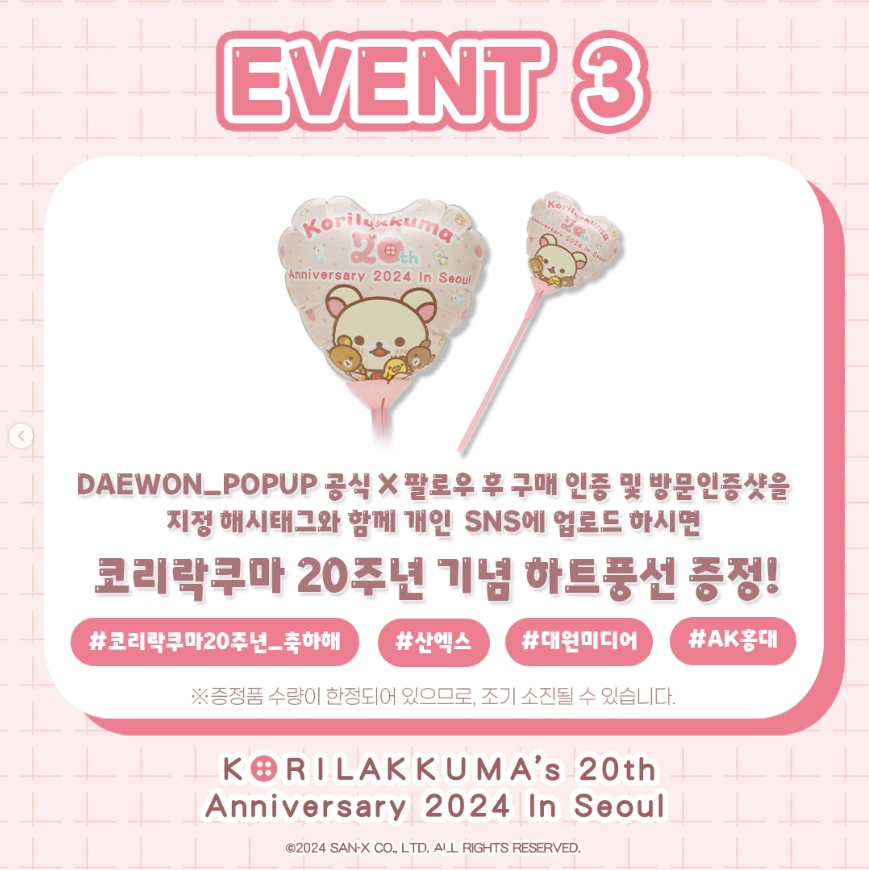 코리락쿠마 20주년 기념 하트 풍선 증정 (재고 소진 시 종료)